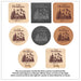 NOTE: Price is for a set of 4, 6, 8 or 12 coasters. Use options on the right (Below on Cell Phone) to select shape (Square or Circle), type (Wood, Stone or Cork) and add names. If no names just leave blank. See 3rd image for styles.